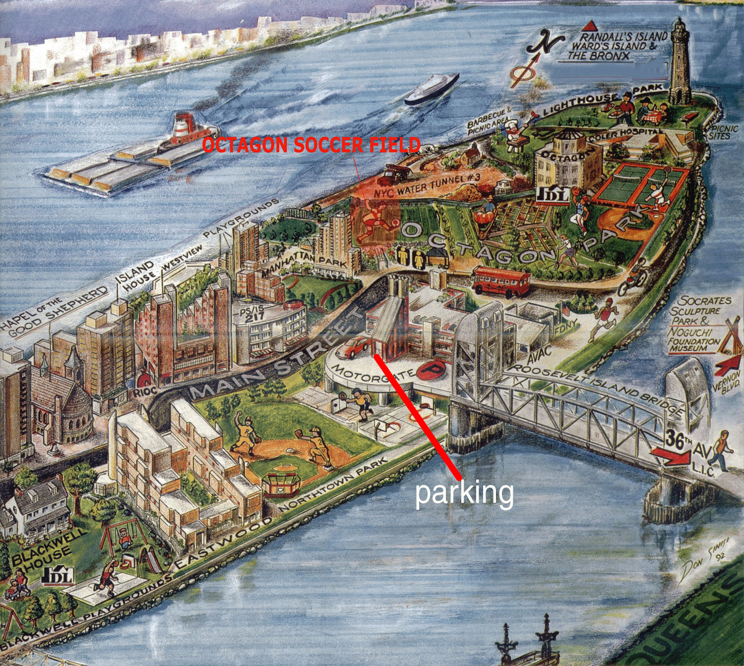 Directions to Roosevelt Island's Octagon's Socccer Field: