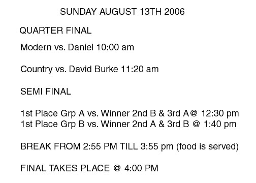 GAME RESULTS August 6th, 2006: